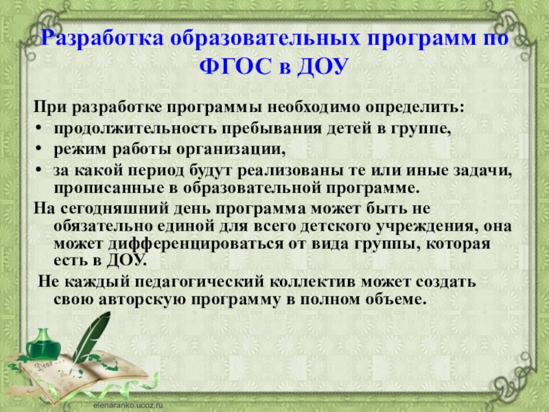 Слайд 10. Разработка образовательных программ по ФГОС в ДОУ