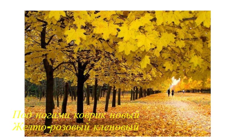 Слайд 8Под ногами коврик новый Желто-розовый кленовый