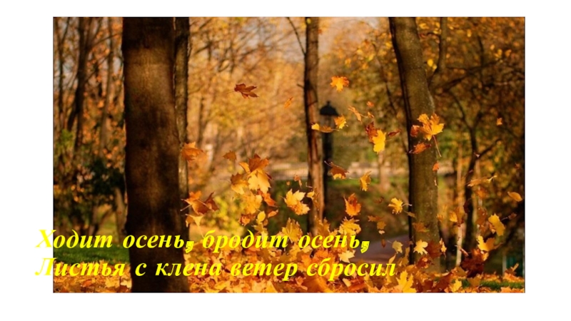 Слайд 7Ходит осень, бродит осень, Листья с клена ветер сбросил