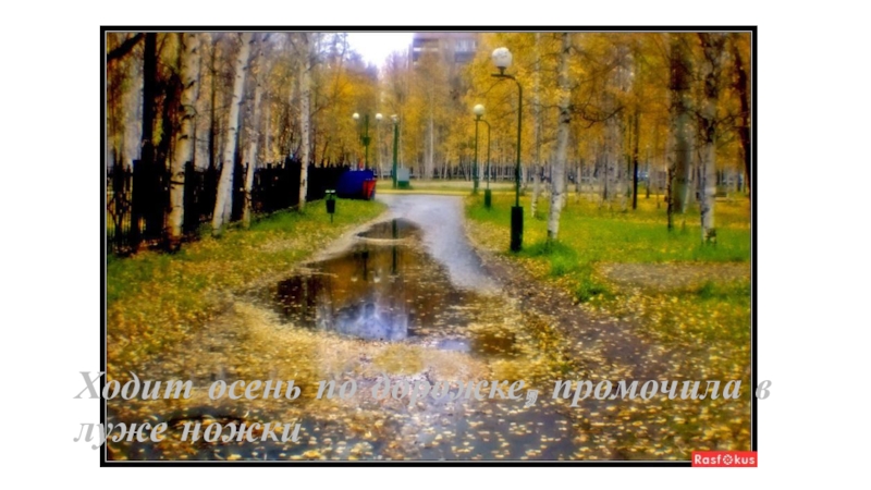Слайд 5Ходит осень по дорожке, промочила в луже ножки