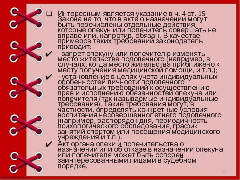 Слайд 14Интересным является указание в ч. 4 ст. 15 Закона на то,
