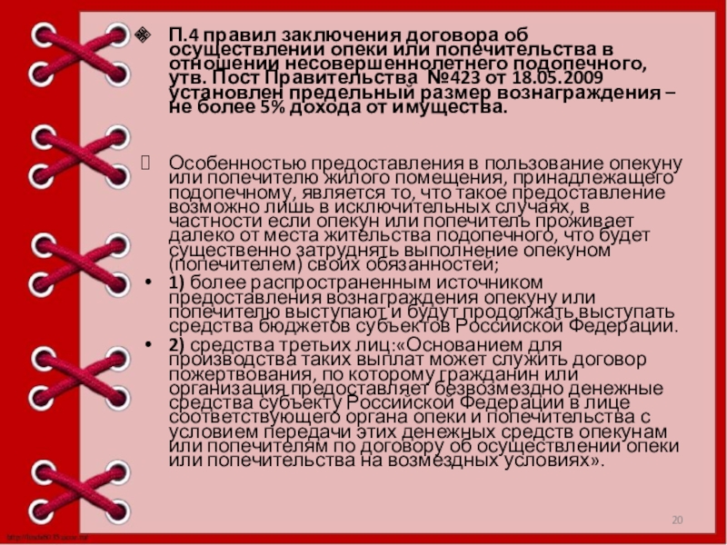 Слайд 20П.4 правил заключения договора об осуществлении опеки или попечительства в отношении