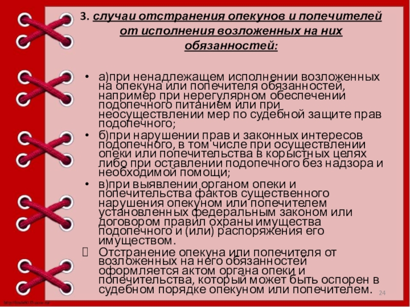 Слайд 243. случаи отстранения опекунов и попечителей от исполнения возложенных на них