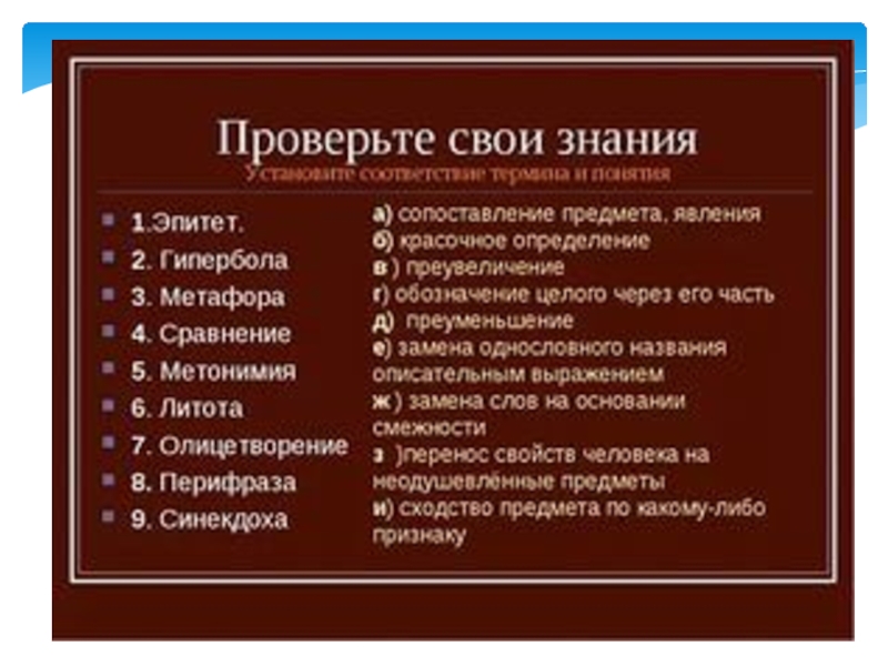 Слайд 9МЕТАФОРА (греч. Μεταφορά — перенесение) — вид тропа, в основе которого