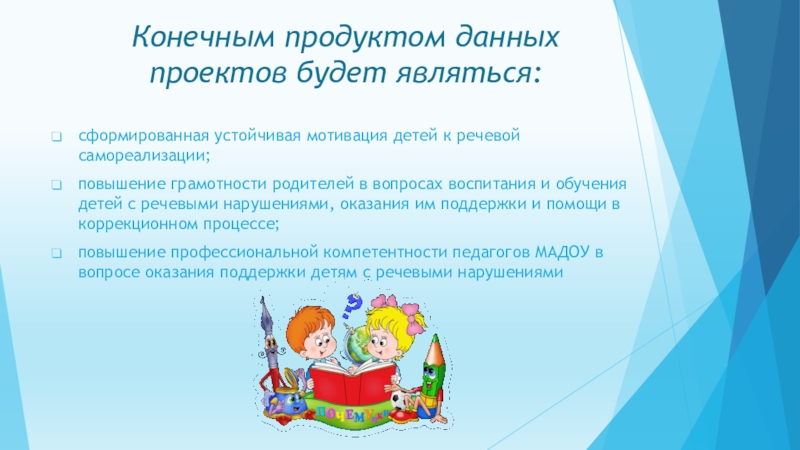 Слайд 11Конечным продуктом данных проектов будет являться:
