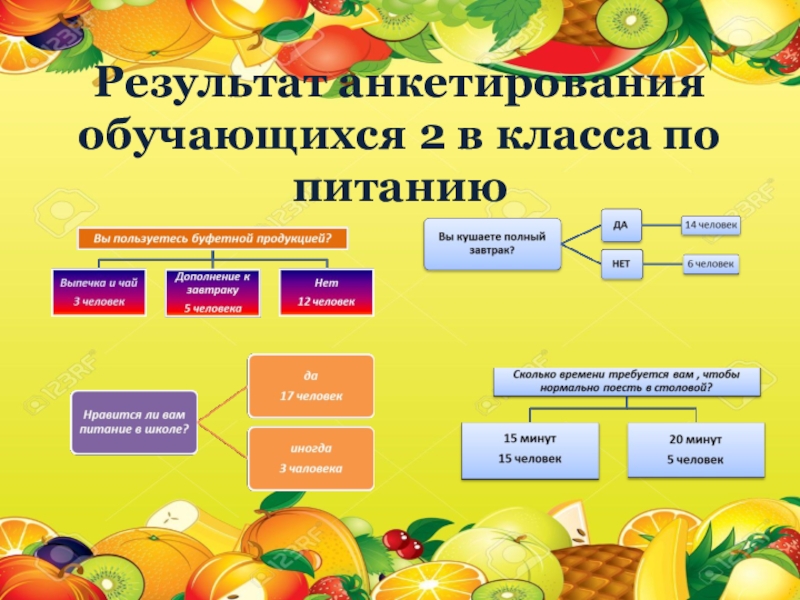 Слайд 9Результат анкетирования обучающихся 2 в класса по питанию