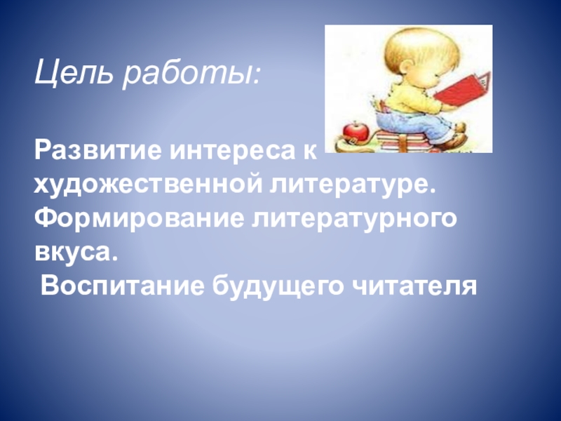 Воспитать потребность общения с книгой, культуру чтения, бережное отношение к книге.
