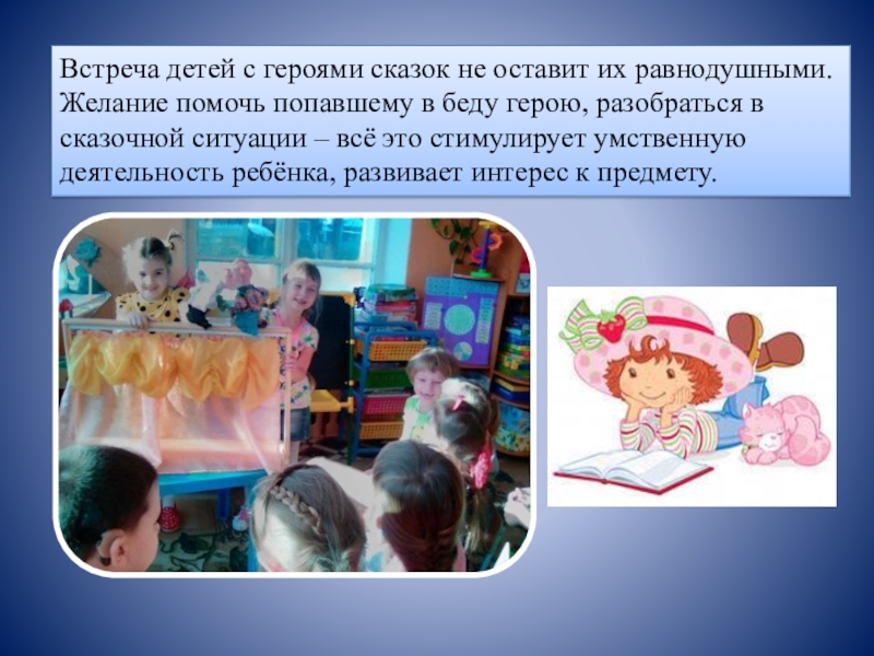 Слайд 14Встреча детей с героями сказок не оставит их равнодушными. Желание помочь