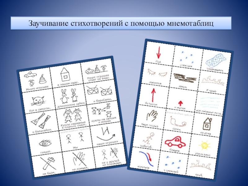 Слайд 20Заучивание стихотворений с помощью мнемотаблиц