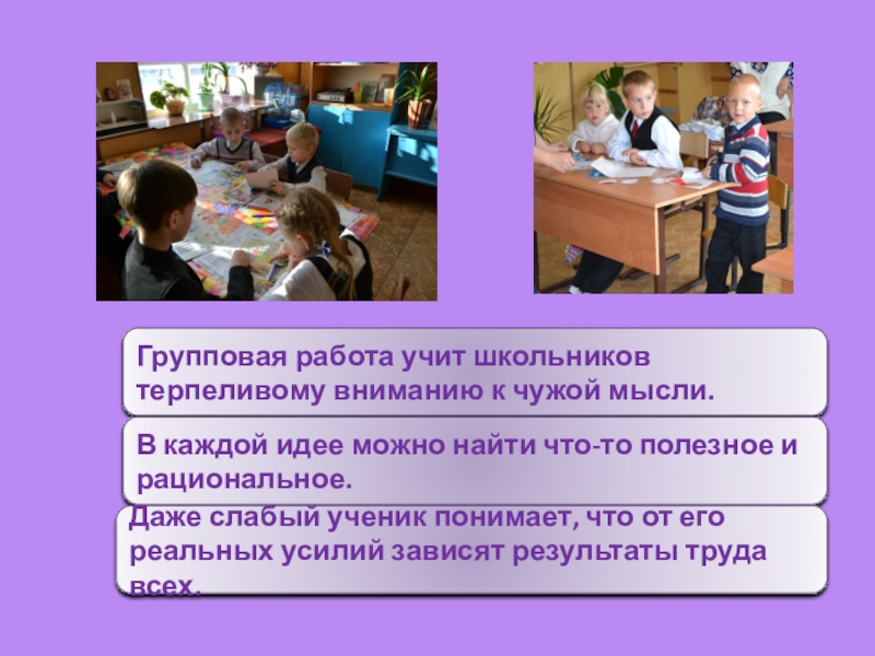 Даже слабый ученик понимает, что от его реальных усилий зависят результаты труда всех.
