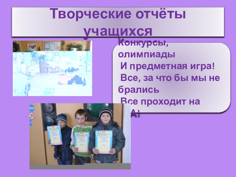 Это сайт презентаций, где можно хранить и обмениваться своими презентациями, докладами, проектами, шаблонами в формате PowerPoint с другими пользователями. Мы помогаем школьникам, студентам, учителям, преподавателям хранить и обмениваться учебными материалами.