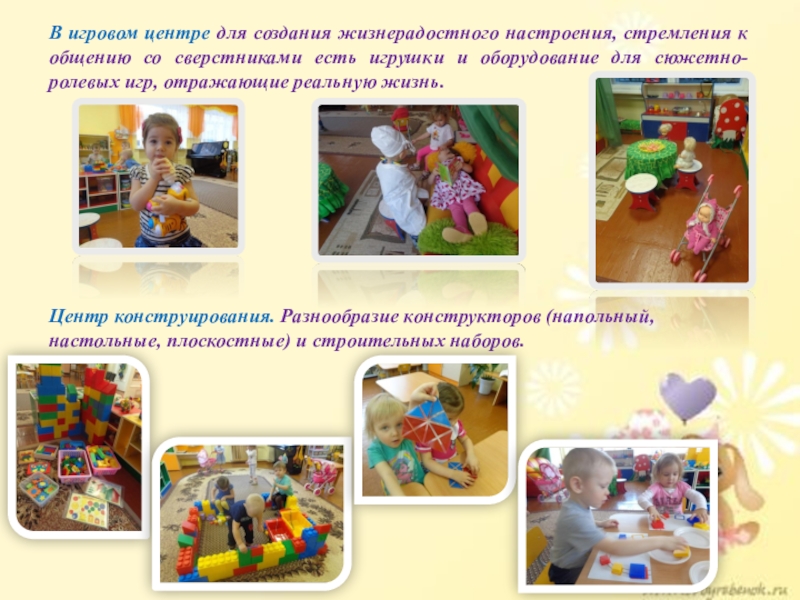 Центр конструирования. Разнообразие конструкторов (напольный, настольные, плоскостные) и строительных наборов.