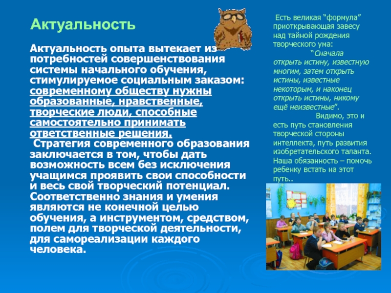 школьном МО учителей начальных классов на тему: "Развитие творческих способностей младших школьников на уроках окружающего мира ".