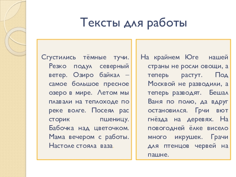 На крайнем Юге нашей страны не росли овощи, а теперь растут. Под Москвой не разводили, а теперь разводят. Бешал Ваня по полю, да вдруг остановился. Грчи вют гнёзда на деревях. На повогодней ёлке висело много икрушек. Грачи для птенцов червей на пашне.