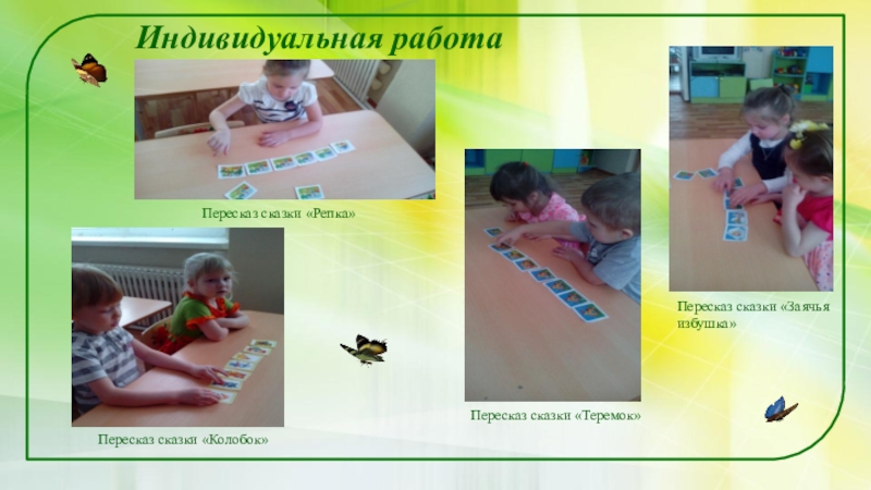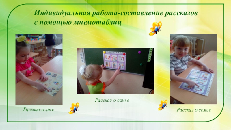 Слайд 28Индивидуальная работа-составление рассказов с помощью мнемотаблиц