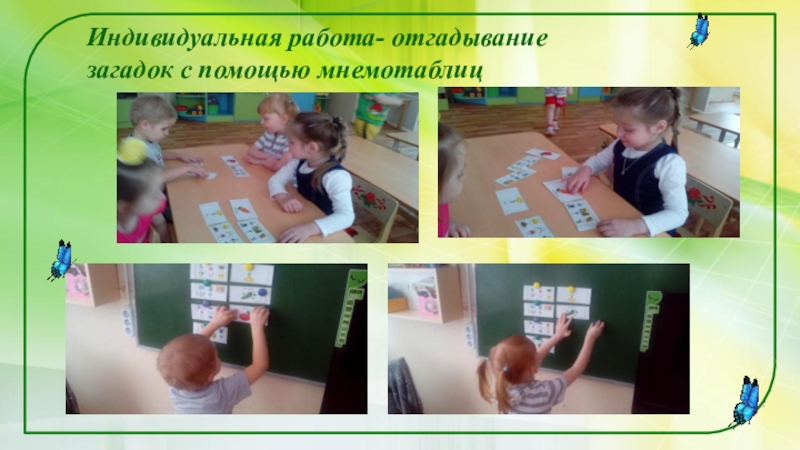 Слайд 19Индивидуальная работа- отгадывание загадок с помощью мнемотаблиц