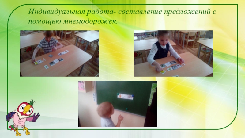 Слайд 11Индивидуальная работа- составление предложений с помощью мнемодорожек.