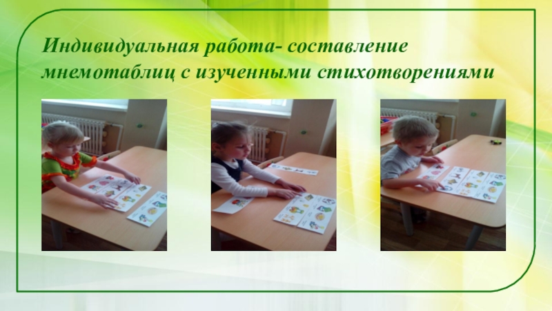 Слайд 17Индивидуальная работа- составление мнемотаблиц с изученными стихотворениями