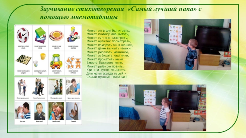 Слайд 14Заучивание стихотворения «Самый лучший папа» с помощью мнемотаблицы