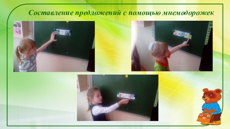 Слайд 10Составление предложений с помощью мнемодорожек