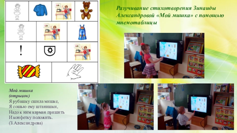 Разучивание стихотворения Зинаиды Александровой «Мой мишка» с помощью мнемотаблицы