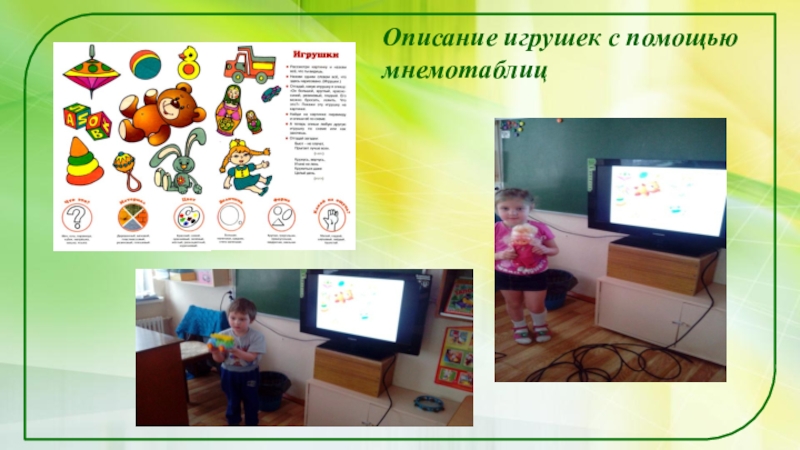 Слайд 22Описание игрушек с помощью мнемотаблиц