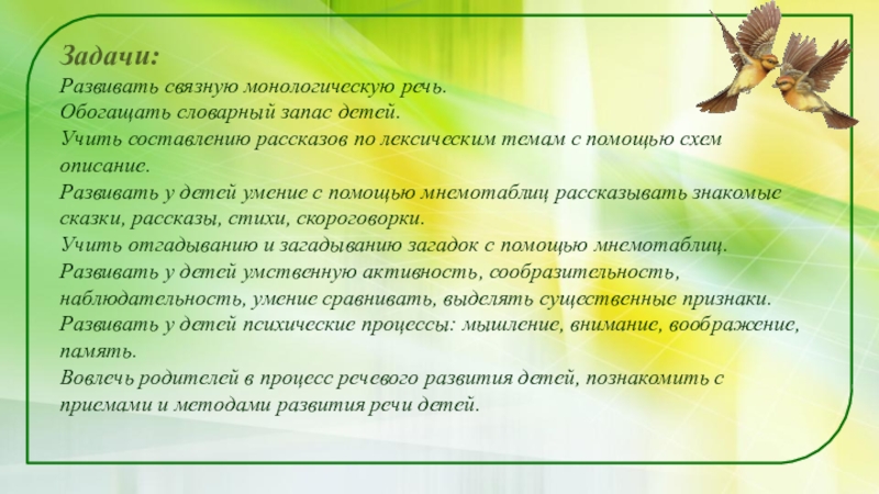 Развивать связную монологическую речь.