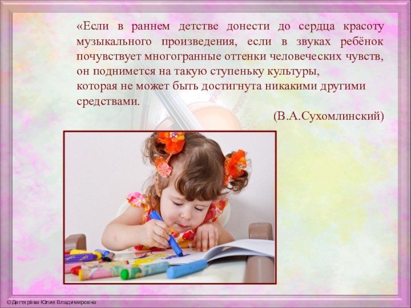 в звуках ребёнок почувствует многогранные оттенки человеческих чувств, он поднимется на такую ступеньку культуры,