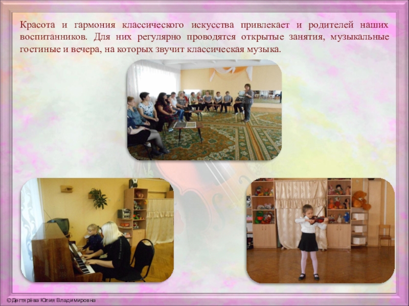 Слайд 18Красота и гармония классического искусства привлекает и родителей наших воспитанников. Для