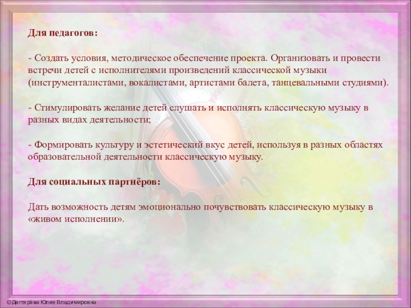 Дать возможность детям эмоционально почувствовать классическую музыку в «живом исполнении».