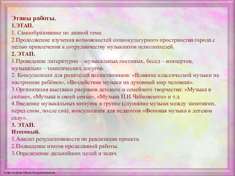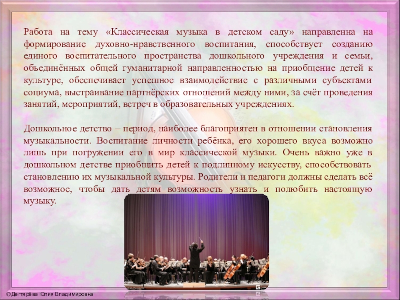 Работа на тему «Классическая музыка в детском саду» направленна на формирование
