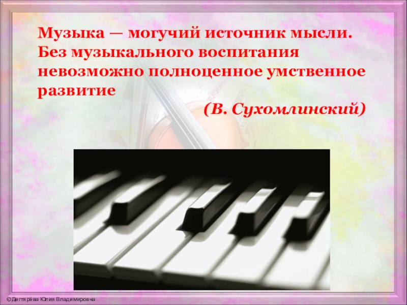 Слайд 23Музыка — могучий источник мысли. Без музыкального воспитания невозможно полноценное умственное