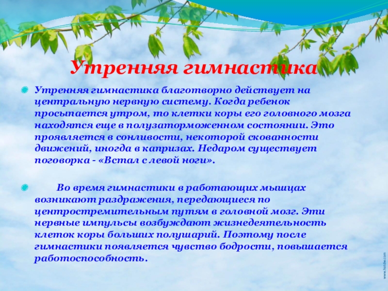 Утренняя гимнастика благотворно действует на центральную нервную систему. Когда ребенок