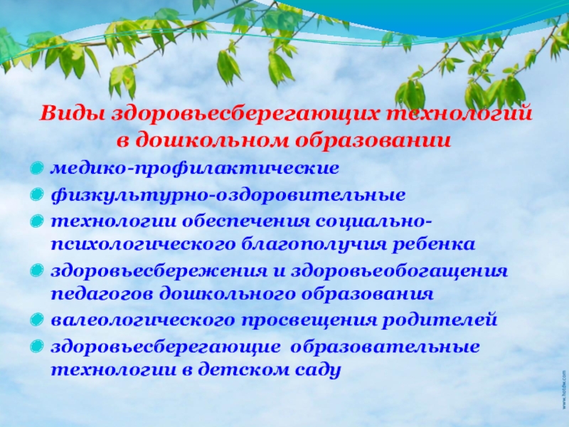 Слайд 8 Виды здоровьесберегающих технологий в дошкольном образовании