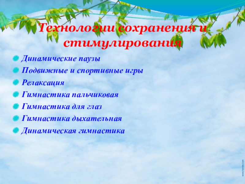 Слайд 11Технологии сохранения и стимулирования
