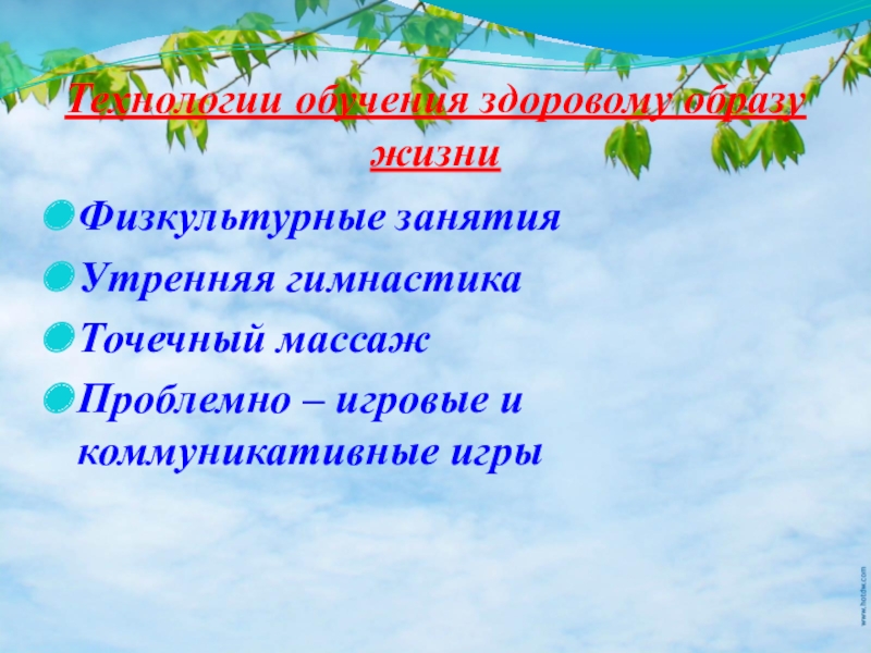 Слайд 20Технологии обучения здоровому образу жизни