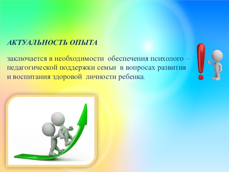 заключается в необходимости обеспечения психолого – педагогической поддержки семьи в вопросах развития и воспитания здоровой личности ребенка.