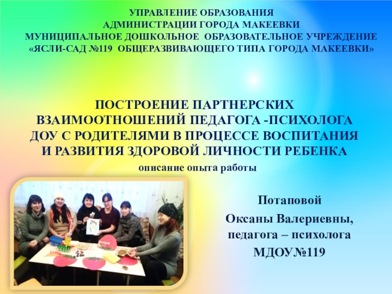 ПОСТРОЕНИЕ ПАРТНЕРСКИХ ВЗАИМООТНОШЕНИЙ ПЕДАГОГА -ПСИХОЛОГА ДОУ С РОДИТЕЛЯМИ В ПРОЦЕССЕ ВОСПИТАНИЯ И РАЗВИТИЯ ЗДОРОВОЙ ЛИЧНОСТИ РЕБЕНКА