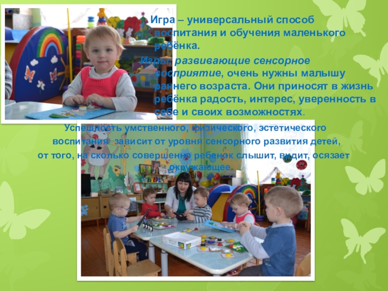 Игры, развивающие сенсорное восприятие, очень нужны малышу раннего возраста. Они приносят в жизнь ребёнка радость, интерес, уверенность в себе и своих возможностях.