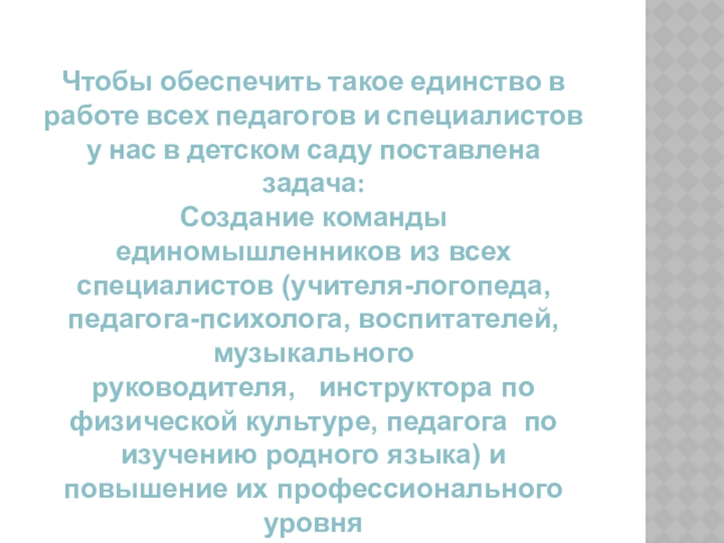 Слайд 30Чтобы обеспечить такое единство в работе всех педагогов и специалистов у