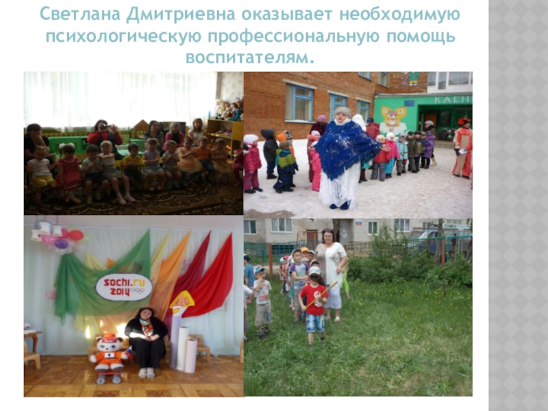 Слайд 26Светлана Дмитриевна оказывает необходимую психологическую профессиональную помощь воспитателям.