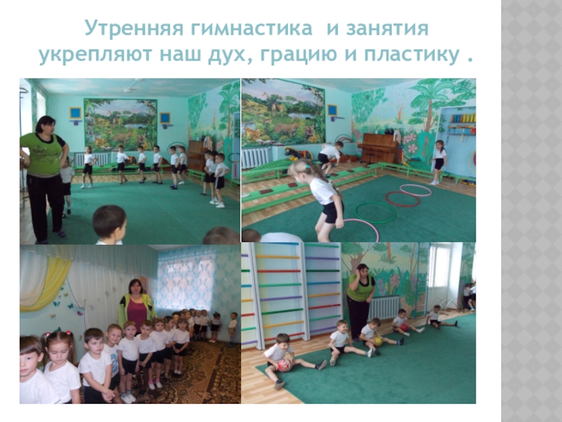 Слайд 17Утренняя гимнастика и занятия укрепляют наш дух, грацию и пластику .