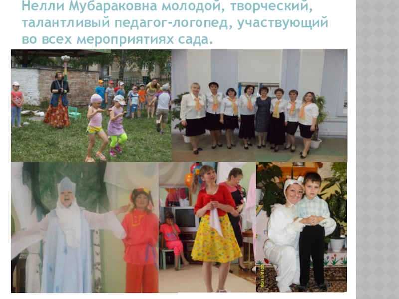 Слайд 29Нелли Мубараковна молодой, творческий, талантливый педагог-логопед, участвующий во всех мероприятиях сада.