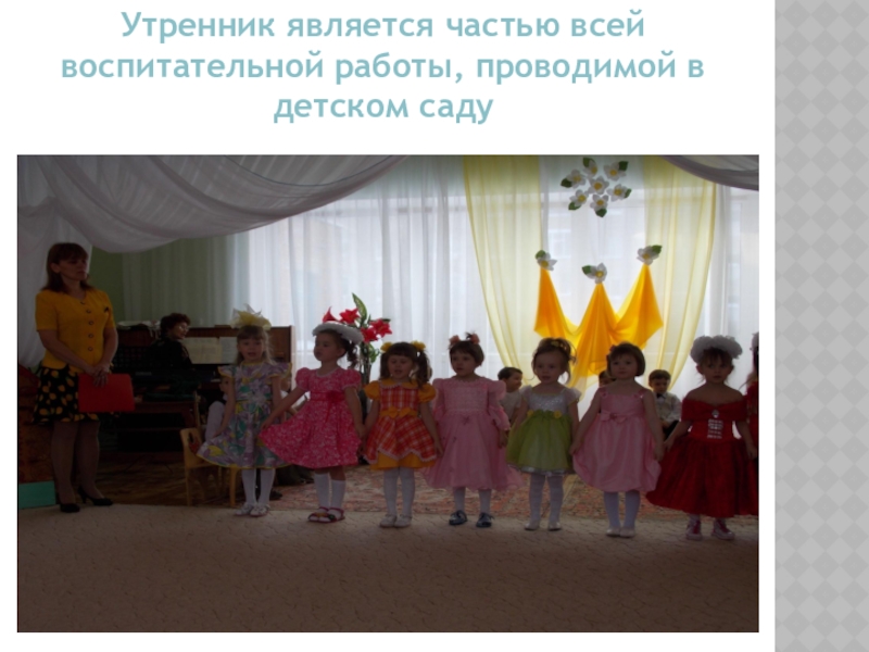 Слайд 6Утренник является частью всей воспитательной работы, проводимой в детском саду