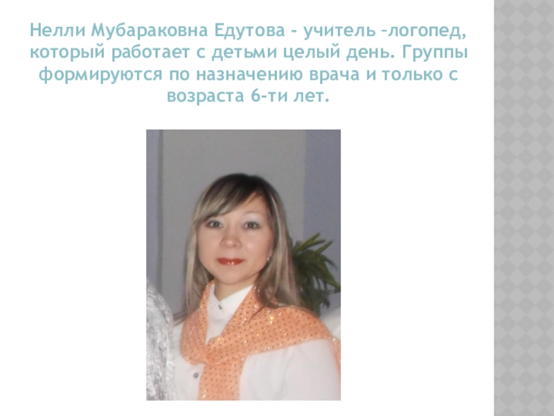 Слайд 28Нелли Мубараковна Едутова - учитель –логопед, который работает с детьми целый