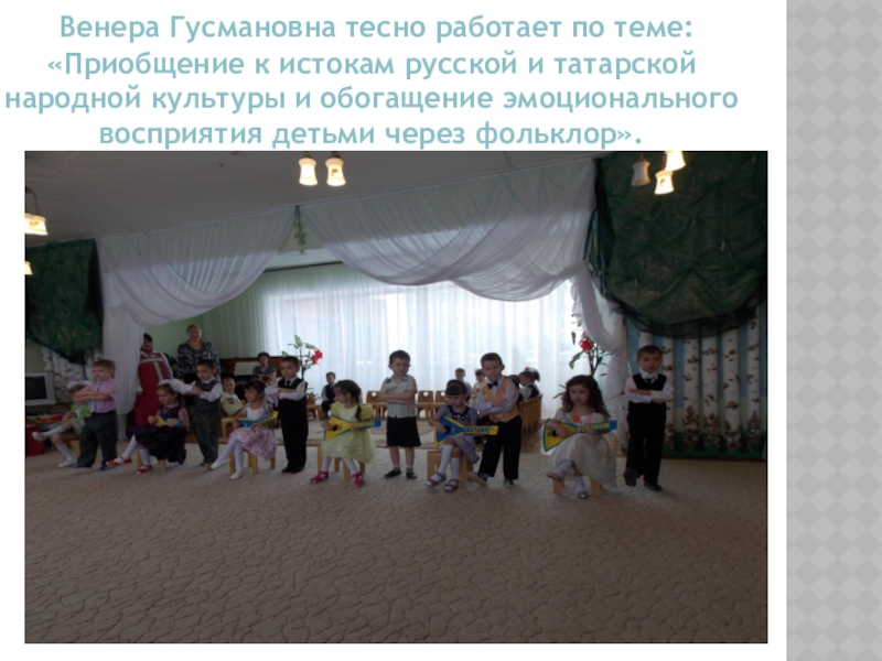 Слайд 5 Венера Гусмановна тесно работает по теме: «Приобщение к истокам русской