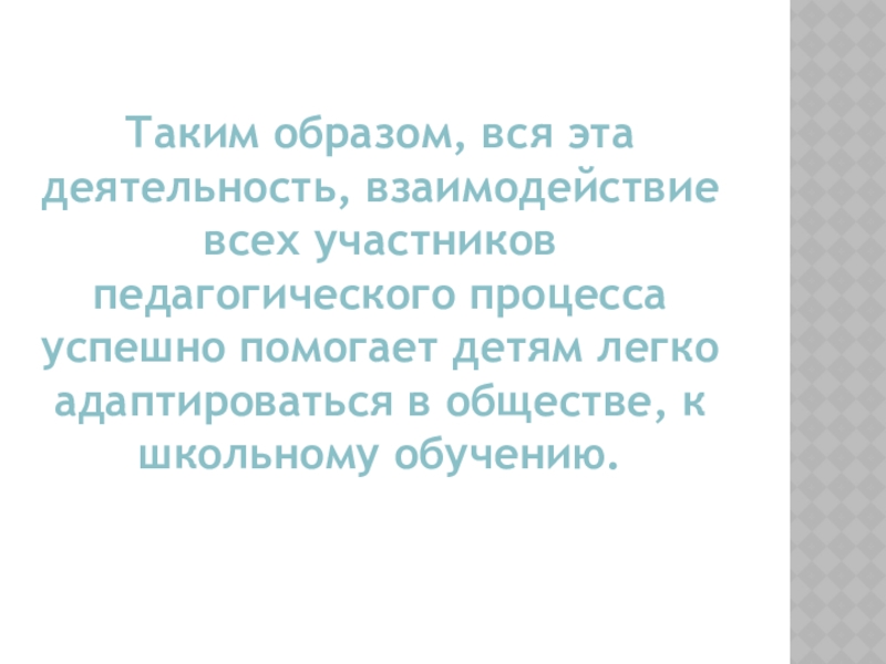 Таким образом, вся эта деятельность, взаимодействие всех участников педагогического процесса успешно