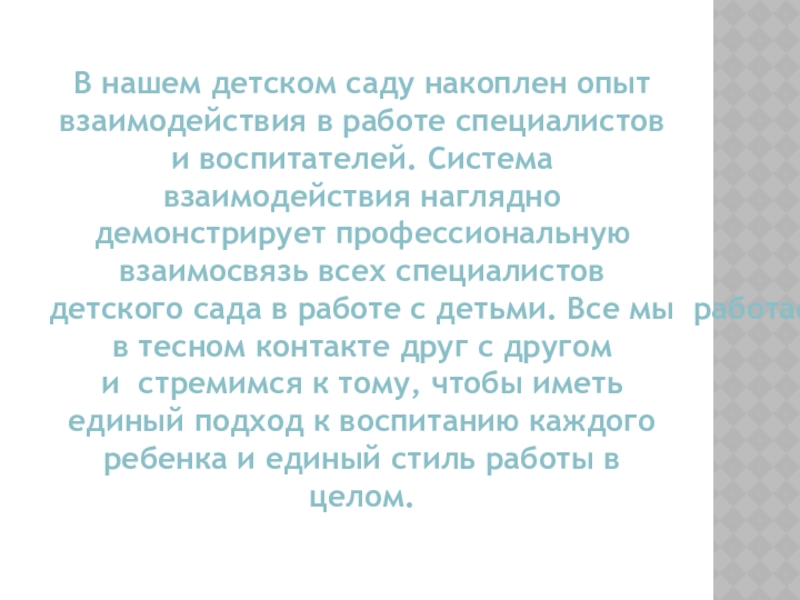 Слайд 3В нашем детском саду накоплен опыт взаимодействия в работе специалистов и
