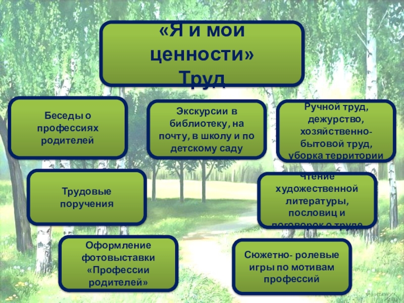 Ручной труд, дежурство, хозяйственно- бытовой труд, уборка территории