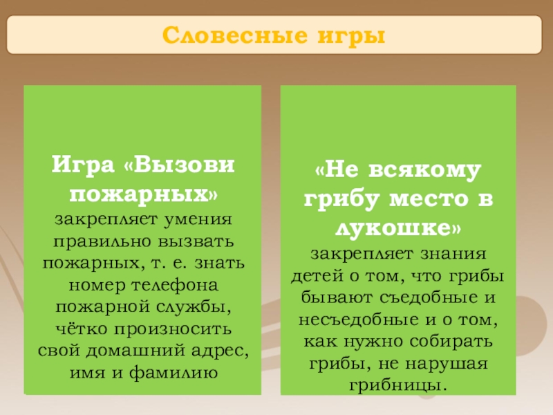 закрепляет умения правильно вызвать пожарных, т. е. знать номер телефона пожарной службы, чётко произносить свой домашний адрес, имя и фамилию